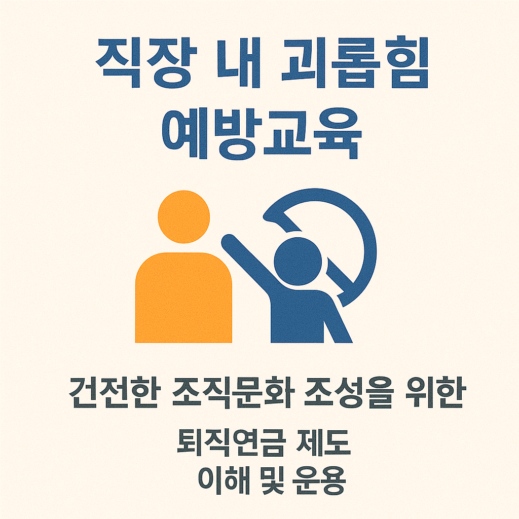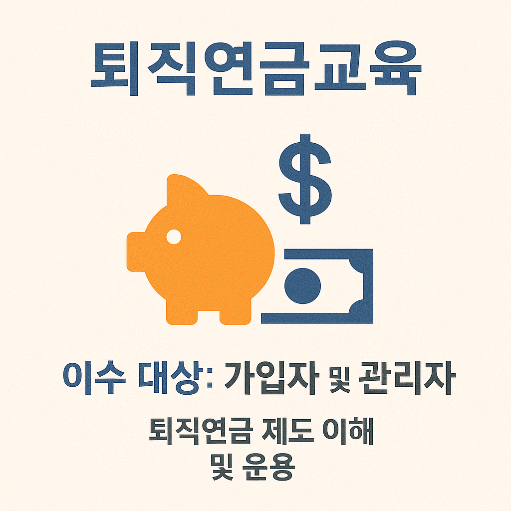 퇴직연금 제도를 운영하는 사업장에서 이수해야 하는 고용노동부 법정의무교육입니다. 연금 구조, 수령 방법, 세제 혜택 등을 직원에게 명확히 안내해 재무 이해도를 높이는 데 중요합니다.