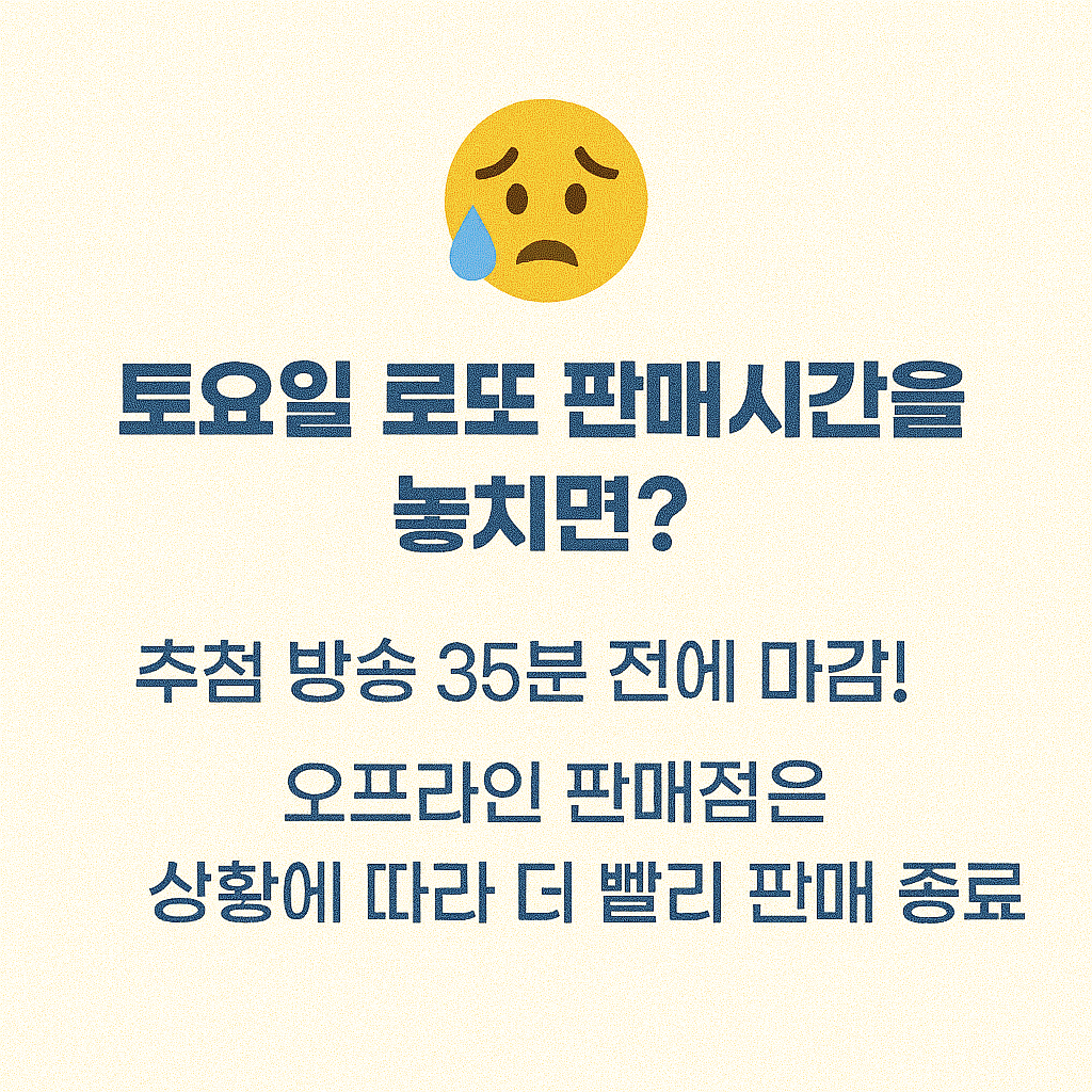 많은 분들이 놓치는 실수가 바로 토요일 로또 판매시간 착각입니다. 오후 8시 10분, 혹은 추첨 방송 직전에 서둘러 구매하려다 다음 주 회차로 넘어가는 경우가 종종 발생하죠.